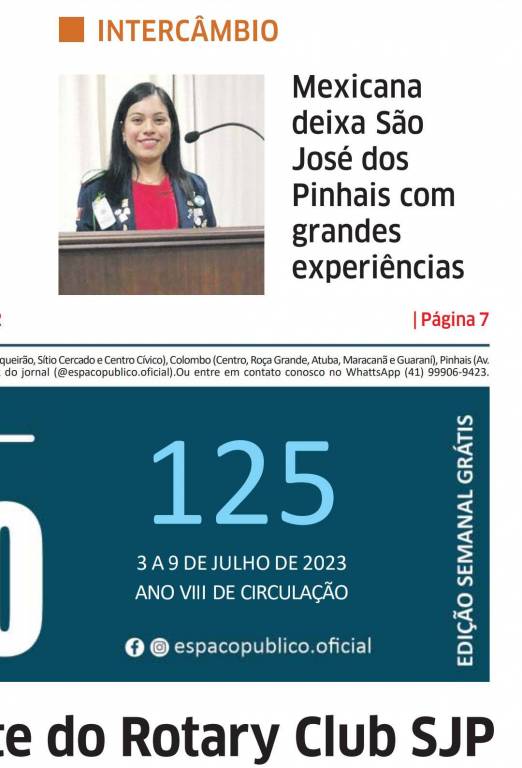 A intercambista mexicana Wendy Pamela Sanchez Bustos foi destaque em jornal impresso de circulação na Grande Curitiba (jornal Espaço Público ed. 125, de 3 a 9 de julho de 2023).