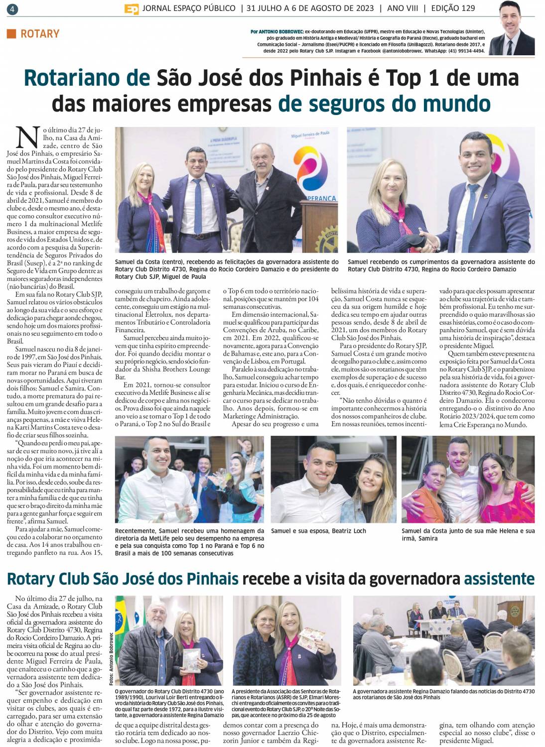 A notícia foi destaque na edição 129, de 31 de julho a 6 de agosto de 2023 do jornal Espaço Público, veículo impresso semanal de São José dos Pinhais.
