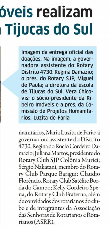 Doações do Rotary Club SJP são destaque na imprensa