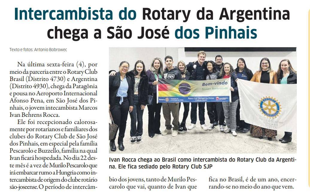 Na edição 130, de 7 a 13 de agosto de 2023 do jornal Espaço Público (veículo impresso semanal de São José dos Pinhais) foi destaque a chegada do intercambista argentino Marcos Ivan Behrens Rocca a São José dos Pinhais.