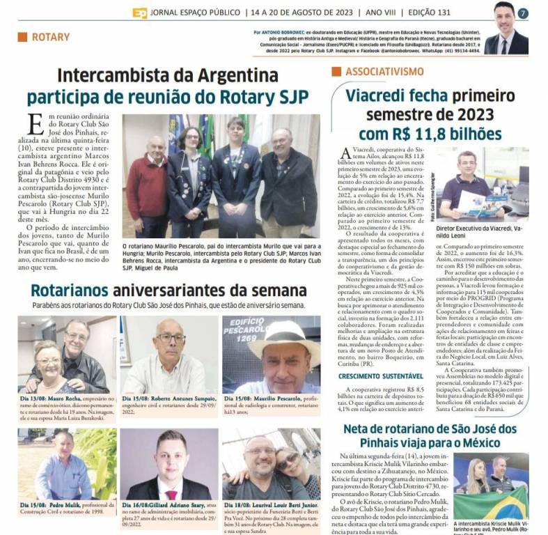 O avô de Kriscie, o rotariano Pedro Mulik, do Rotary Club São José dos Pinhais, agradeceu o empenho de todos pelo intercâmbio da neta.