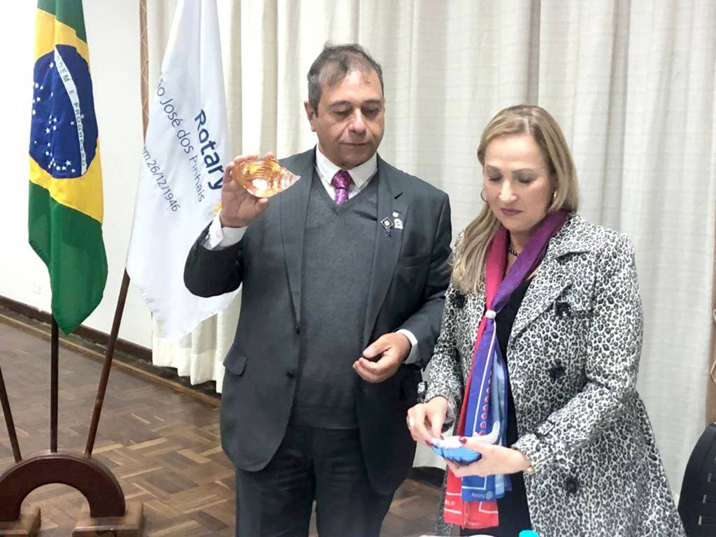 O governador ainda recebeu das mãos do presidente do Rotary SJP, Miguel de Paula e da sua esposa e presidente da Associação das Senhoras de Rotarianos (ASRR), Elmari Moreschi, um presente simbólico: três objetos decorativos em forma de concha, que representam o símbolo do Ano Rotário 2023/2024, objetos escolhidos pelo presidente internacional do Rotary ano 2023/2024, o escocês Gordon McInally, para representar a esperança que o Rotary leva às comunidade onde atua. Também foi entregue ao govenador o livro “O Rotary Club de São José dos Pinhais: uma página na história”, que conta a história do Rotary Club são-joseense – de autoria dos companheiros Antonio Sérgio Pallú Filho, Lourival Louir Berti Junior e Sérgio Luiz Cordeiro Muniz (Edição do autor, 2014).
