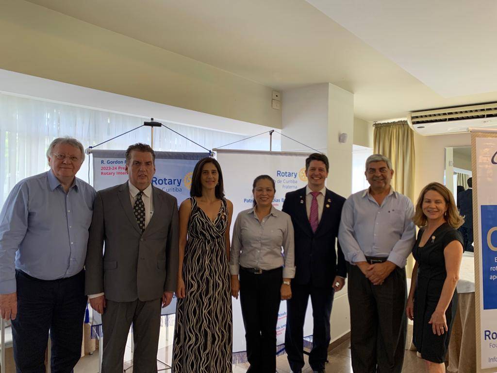 Na foto, Governador Dionísio Olichevis, sr Marco Túlio Vargas, associado do Lions Club e presidente do Banco de Alimentos, Presidente Patrícia Cury, cp Chang Yen-Li-Chain, associada RC Curitiba, Presidente Fábio Reche dos Reis, GAD Luiz Alberto da Cruz e Sandra Aubrift, presidente da Comissão Distrital da Fundação Rotaria do Distrito 4730.