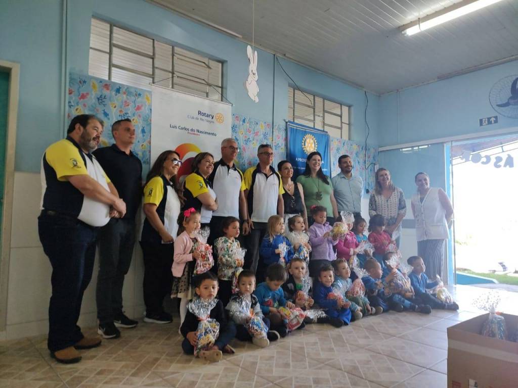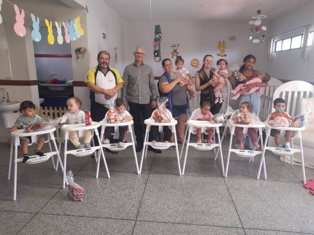 aconteceu no dia 27/03 ás 9:30 hrs no Centro Municipal de Educação Infantil Tia Fania e ás 16:30 hrs no Centro Municipal de Educação Infantil Silvestre Maess a entrega do Projeto 5º Páscoa Criança Feliz, foram entregues cestinhas de Páscoa para alegria das crianças, no total foram entregues 212 cestinhas.