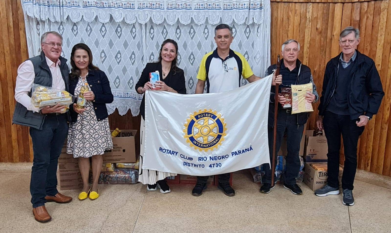FOI REALIZADO NA REUNIÃO ORDINÁRIA DO DIA 26/01/2024 DO ROTARY CLUB DE RIO NEGRO A ENTREGA DOS ALIMENTOS RESULTADO DA 5º ROTARY RUN, NA OPORTUNIDADE 3 ENTIDADES FORAM CONTEMPLADAS, NO TOTAL FORAM ENTREGUES 650 KILOS ENTRE ALIMENTOS E LEITE.
