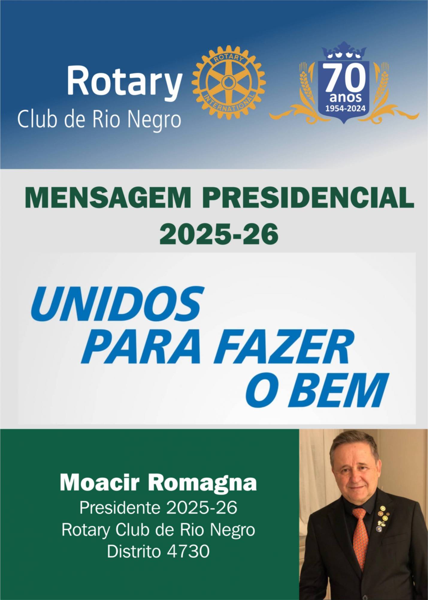 Companheiro MOACIR ROMAGNA eleito presidente 2025-26 do Rotary Club de Rio Negro