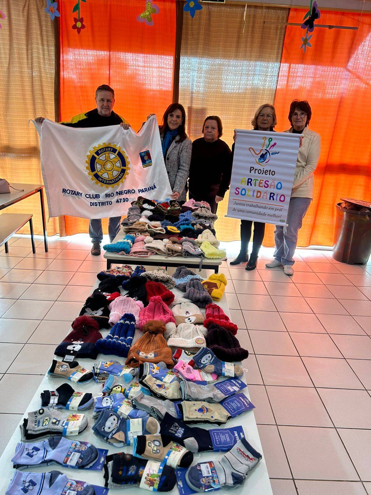 Aconteceu nesta quinta-feira, 07/08, a entrega de toucas e meias do Projeto Aquecer, realizado pelo Grupo Artsol com o apoio do Rotary Club de Rio Negro.