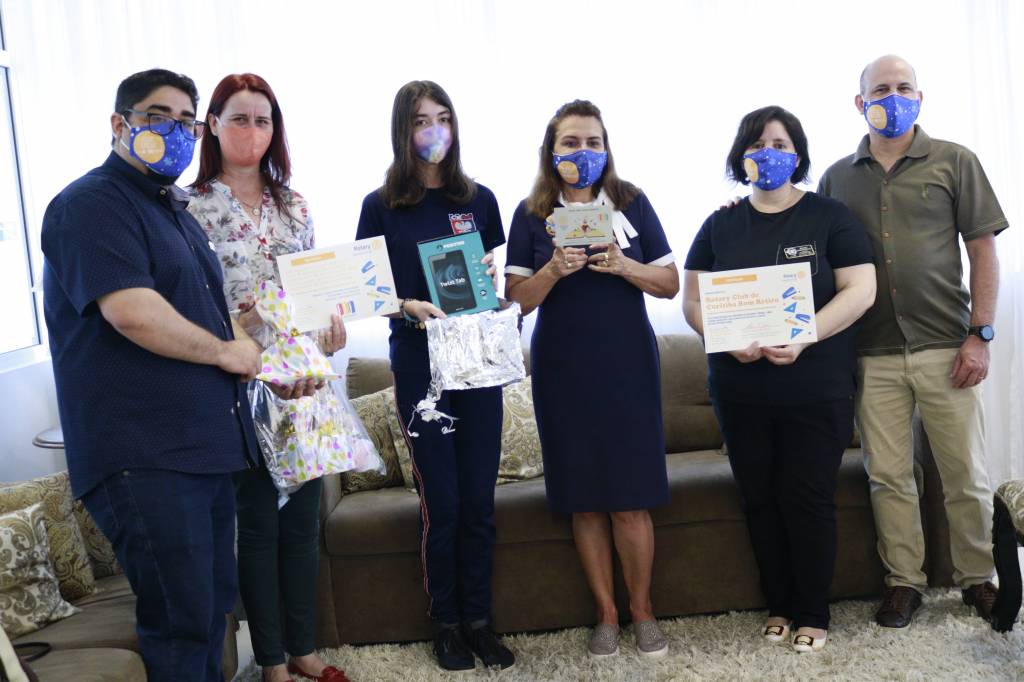 Acompanhada pela mãe, a estudante da Escola Estadual Sebastião Saporski, Sara Gabrielle Rech, descobriu durante o evento que ganhou o concurso “Brasil: essa é a nossa bandeira” e foi premiada com um tablet Positivo Twist. Outros participantes receberam, de acordo com sua classificação: caixa de som bluetooth, fones de ouvido bluetooth, multiplicador PowerCube Extended USB, mochilas Conway ou canecas personalizadas com temas de perseverança, estudos e futuro. Os desenhos enviados por crianças de 10 anos com o tema "Brasil de Ontem, de Hoje e de Amanhã" foram premiados com quebra-cabeças da bandeira nacional. Todas as 93 redações enviadas para os clubes foram premiadas com um chaveiro-livro.