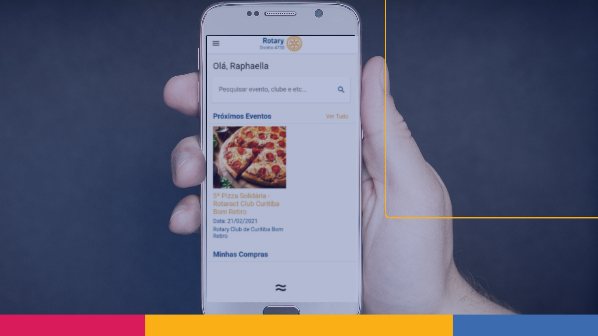 Promovida pelo Rotaract Club de Curitiba Bom Retiro, a 5ª Pizza Solidária será o primeiro evento a utilizar a plataforma. Para participar e contribuir, basta instalar o aplicativo e fazer o pedido de um dos combos de pizza. “É uma excelente oportunidade para que os companheiros se cadastrem e conheçam a ferramenta”, afirma André Pepino. As vendas dos combos começaram nesta segunda-feira (08) e vão até o dia 17 de fevereiro, com entregas delivery para Curitiba no dia 21 de fevereiro. Todo lucro arrecadado será utilizado na compra de material escolar para crianças carentes. O próximo evento a utilizar a ferramenta será a Festa das Nações.
