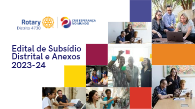 A Comissão Distrital da Fundação Rotária apresenta o Edital de Subsídio Distrital 2023-24, para clubes que desejam solicitar recursos da Fundação Rotária para projetos.