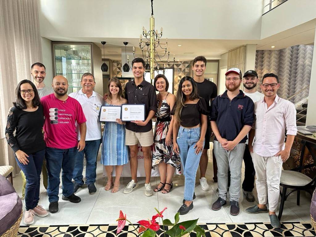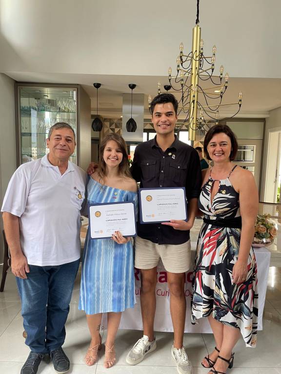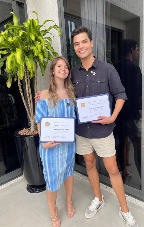 Gabriel Pantojo, atual presidente do clube, e Nathalia Zatoni, vice-presidente, receberam o título de reconhecimento Paul Harris, das mãos do Representante Distrital de Rotaract 2023-24, Rafael Noguti, e do Governador 2023-24 Laerzio Chiesorin Junior. A entrega aconteceu numa reunião festiva do clube e foi marcada por muito entusiasmo e celebração por conta do dever cumprido.