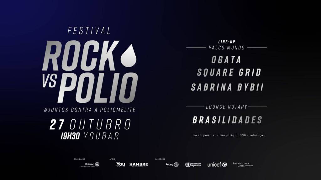 O Rotaract Club de Curitiba Oeste realizou, em outubro, mais uma edição do Rock vs. Pólio no YouBar, com o apoio do Ivan Cruzeiro (proprietário do YouBar. Evento de arrecadação para compra de vacinas que reúne as b mais engajadas bandas de rock, DJs, influenciadores digitais e parceiros que apoiam a maior campanha da nossa instituição a END POLIO NOW.