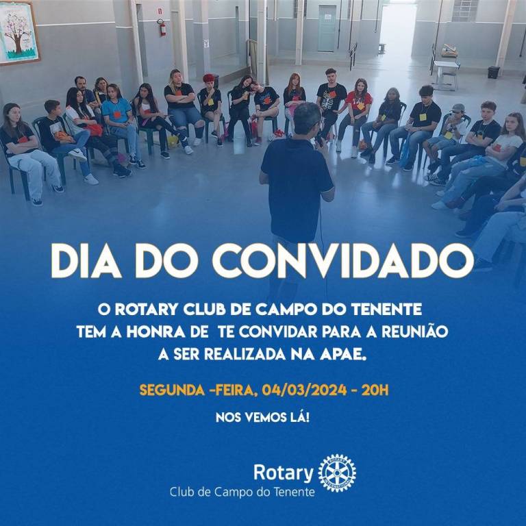 Quer realizar uma edição do “Dia do Convidado”? Aprender e apresentar o Rotary Club? Entre e contato com a presidente da comissão de Desenvolvimento do Quadro Associativo Maria Gorethi Lussoli, via whatsapp: 47 99138 9717.
