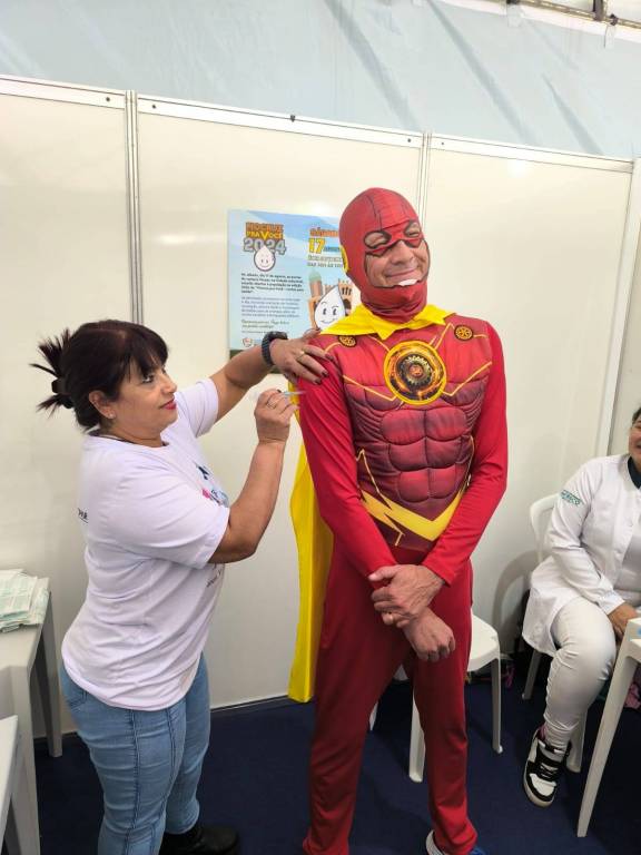 Não poderia deixar de aparecer o famoso incentivador de vacinas o Zé Gotinha, Miguel Henrique Costa associado ao Rotary Club de Curitiba Cristo Rei, que abrilhantou nossa barraca e andou nas redondezas chamando a atenção da população para o evento que estava acontecendo. Também surgiu no evento o Super Rotariano, Luciano Vidal associado ao Rotary Club de Curitiba Corporativo Sanepar, que alegrou a criançada e incentivou a vacinação.