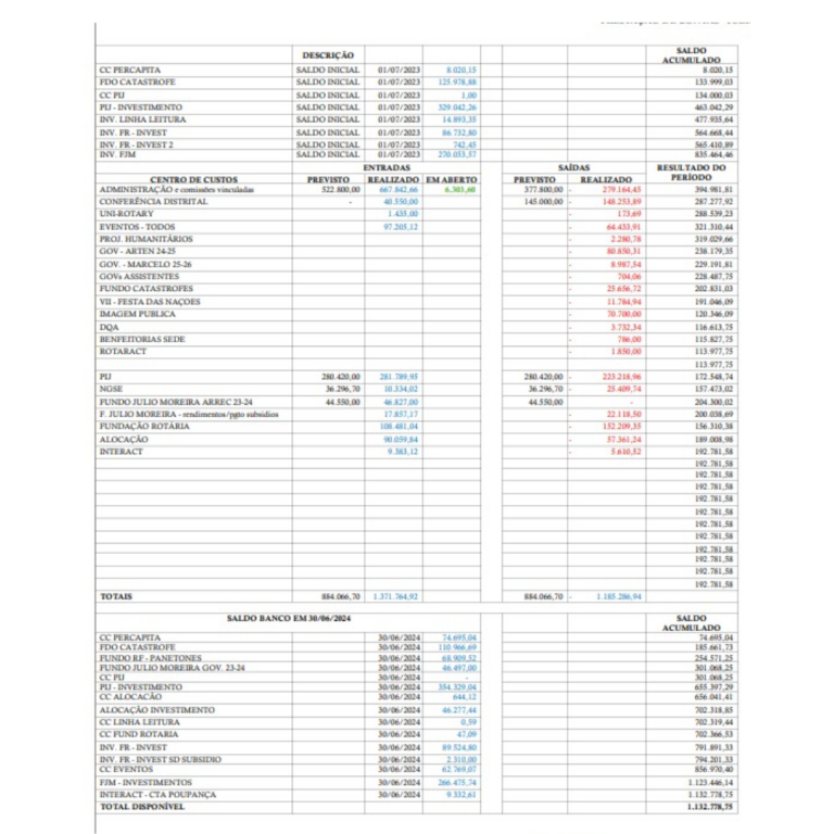 Veja a prestação de contas prévia do ano rotário 2023-24