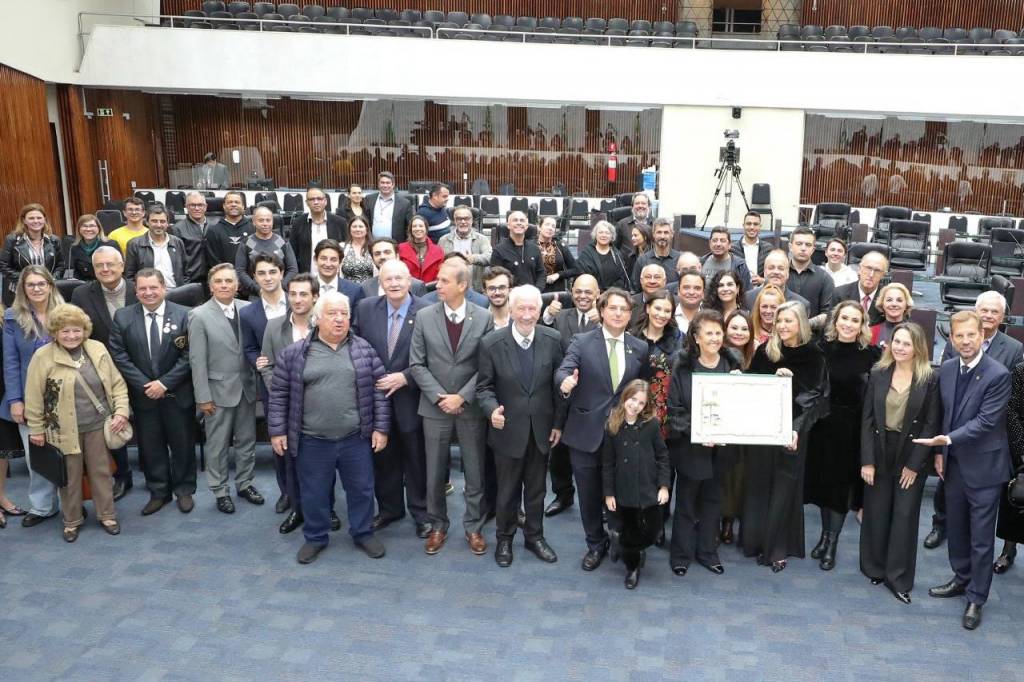 Momento marcante e cheio de emoção, a solenidade de entrega do título de Cidadania Honorária do Estado à empresária Flora Madalosso Bertolli, realizada na noite desta segunda-feira, 14, na Assembleia Legislativa do Paraná, reuniu amigos, familiares, autoridades políticas e representantes do setor da gastronomia paranaense. O Distrito de Rotary International se fez presente através do governador distrital Alfredo Arten Junior, que compôs a mesa diretiva dos trabalhos da sessão solene.