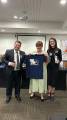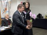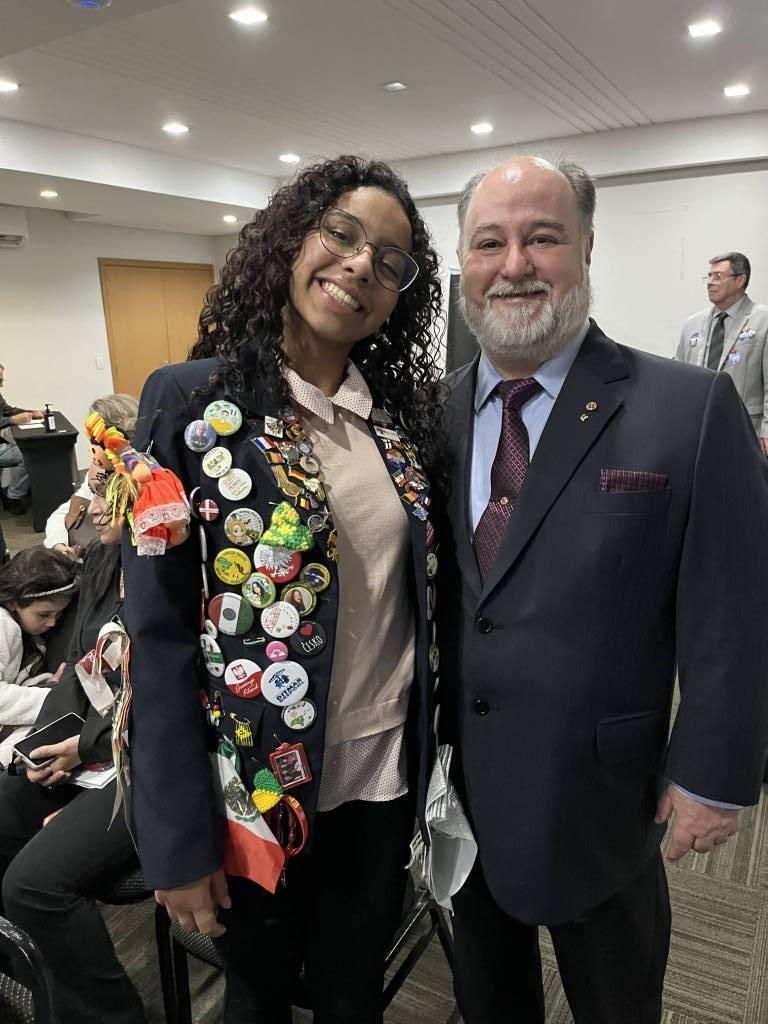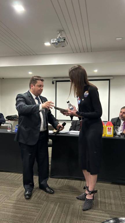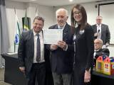 Na segunda etapa, Reunião Ordinária do Clube, foram realizadas as seguintes homenagens e reconhecimentos: entrega do Certificado de Associado Honorário ao companheiro Dr. Juarez Fernando Gaziri por relevantes serviços prestados ao Clube; reconhecimentos as empresas parceiras nos projetos do clube no ano rotário 24/25. O ponto alto da reunião foi a entrega do óculos ao jovem Luís Gabriel da Costa Ferreira acompanhado da Diretora Flávia Regina de Carvalho Valério, aluno do Colégio Estadual Paulina Pacífico Borsari, entidade de ensino onde o Clube está desenvolvendo o Projeto Boa Visão, contando com o apoio do Centro Paranaense de Oftalmologia – CPO e a Óticas Diniz.