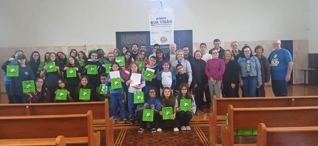 O Rotary Club de São José dos Pinhais entrega 140 óculos para alunos atendidos pelo Patronato Santo Antônio por meio do Programa BOA VISÂO.