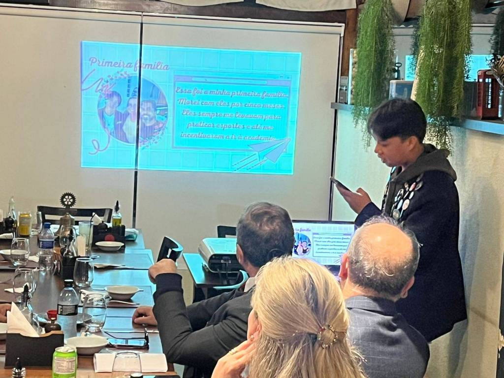 A Presidente 2024-2025 do Rotary Club de Curitiba Guabirotuba, associada Célia Regina Bim, representada pelo companheiro Walter Mikos dedicou a reunião do dia 03/06/2025 ao jovem Huan Liau de Taiwan, selecionado pelo Rotary Club de Hu-Wei Central do Distrito 3470, para a apresentação de sua participação no Programa de Intercâmbio de Jovens do Distrito 4730 no ano rotário 2024-2025.