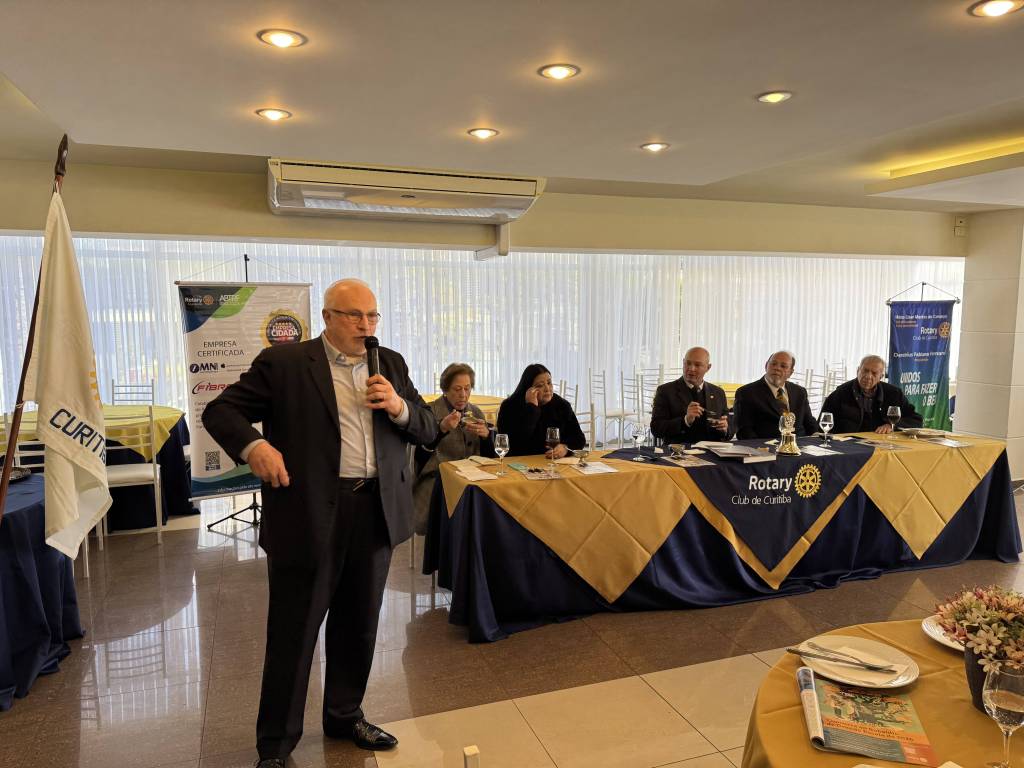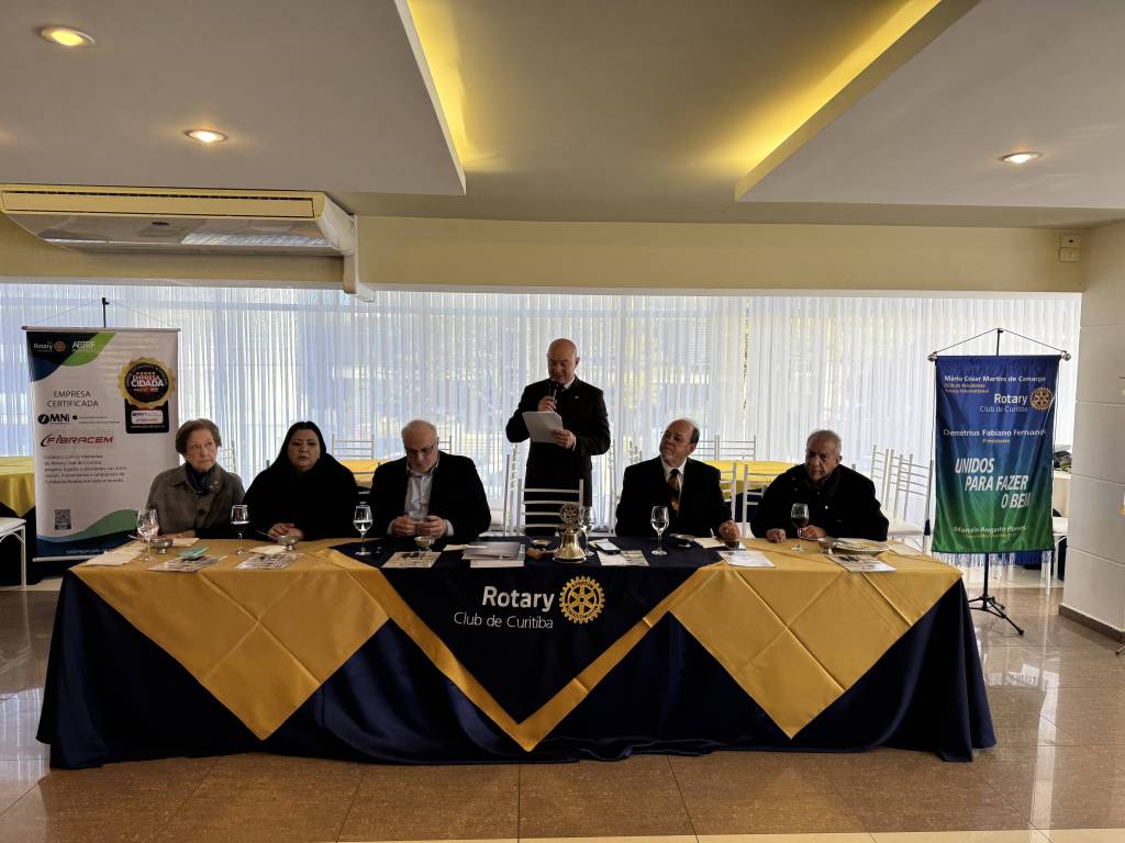A concorrida e prestigiada reunião na sede da Associação Médica do Paraná contou com a presença dos associados, convidados, visitantes, membros da Academia Brasileira Rotária de Letras – Abrol/Pr, e representantes de entidades civis e clubes rotários do Distrito 4730, representados pela Governadora Assistente Professora Adélia Ribeiro e pelo Governador Alfredo Arten Junior, do ano rotário 2024-2025.