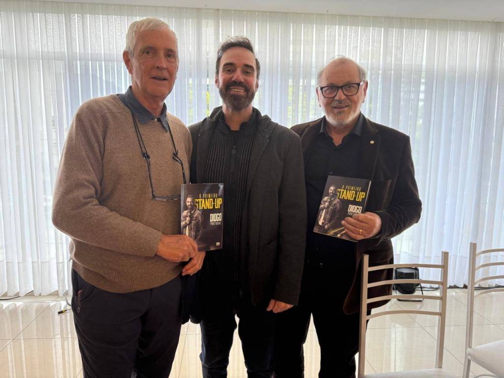 Ao final do encontro o humorista curitibano Diogo Portugal apresentou ao público presente seu primeiro livro, “O Primeiro Stand-up”. Publicada pela DVS Editora, a obra reúne textos que marcaram o início de sua carreira e refletem seu olhar irreverente sobre relacionamentos, envelhecimento, saúde, esportes e profissões. O livro celebra sua trajetória e reafirma seu talento como um dos nomes mais influentes da comédia nacional.