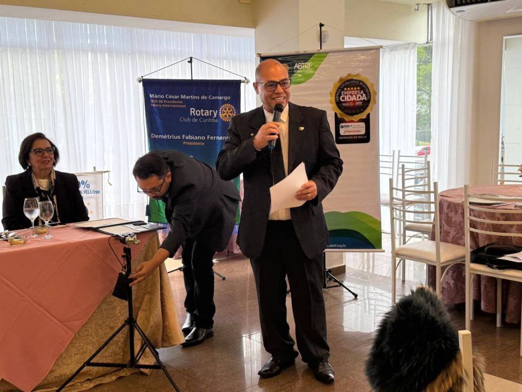 Nesta 5ª feira, dia 25 de setembro, o Rotary Club de Curitiba sob a presidência do consultor Demétrius Fabiano Fernandes recebeu em sua 14ª reunião ordinária do ano rotário 2025-2026, o humorista e empresário Diogo Portugal. O concorrido e prestigiado evento aconteceu na sede da Associação Médica do Paraná.