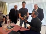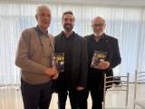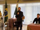O associado Gilmar Cardoso, membro da Abrol-Paraná fez a saudação ao palestrante Diogo Portugal com a apresentação de seu currículum vitae e entrega de documentos históricos sobre seu avô, o Desembargador Clotário de Macedo Portugal que foi o primeiro presidente e fundador do Rotary Club de Curitiba, em 1933.