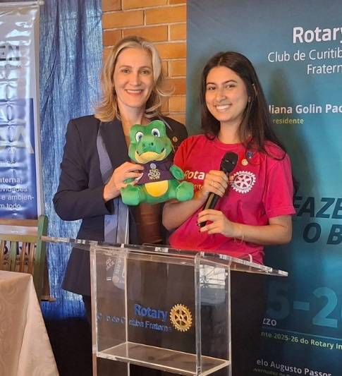 A juventude rotária, representada pelo Rotaract Oeste, por sua presidente Gabriela Oliveira, nos trouxe um convite especial para a Festa do Rock, mostrando entusiasmo e engajamento dos jovens em nossas iniciativas.