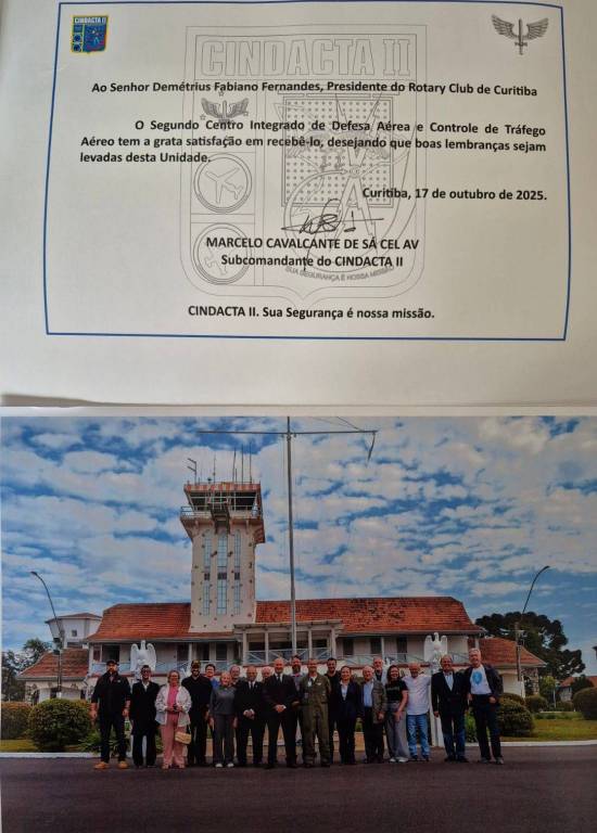 Nesta 6ª feira, dia 17 de outubro, o Rotary Club de Curitiba, sob a liderança do presidente Demétrius Fabiano Fernandes foi recepcionado pelo Comando do Segundo Centro Integrado de Defesa Aérea e Controle de Tráfego Aéreo – CINDACTA II, sediado no bairro Bacacheri, na capital do estado.