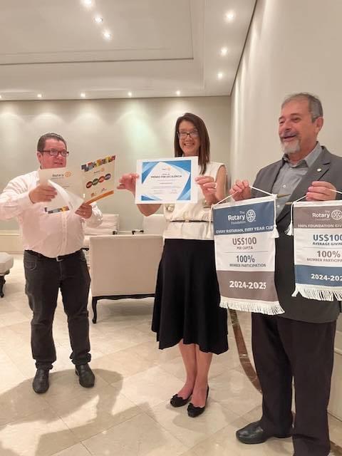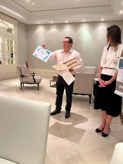 Tradicionalmente a reflexão da reunião natalina foi feita com esmero e brilhantismo pelo casal anfitrião Ruth e Olivar Coneglian. Em destaque tivemos a presença do Governador 2024-2025, Alfredo Arten Junior que fez a entrega do Prêmio por Excelência à Célia Regina Bim, Presidente do Clube por oferecer uma experiência positiva aos seus associados e refletir os valores do Rotary. Na sequência tivemos momentos de confraternização entre a família rotária que neste ano está Unida para Fazer o Bem.