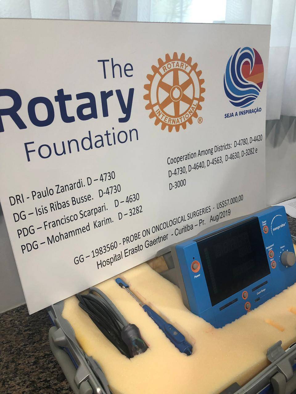 O Hospital Erasto Gaertner, desde 1932, é envolvido com o tratamento de câncer. Há anos, os Rotary Clubs têm contribuído com a instituição, em algumas delas com subsídios da Fundação Rotária. Em virtude dessa parceria, a equipe médica procurou os Distritos 4630, do noroeste do Paraná, e 4730, da região onde se situa o hospital. A equipe expôs a necessidade do aparelho e as tratativas para viabilizar a aquisição foram iniciadas.
