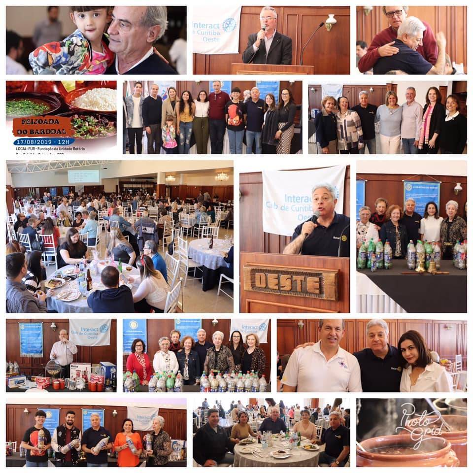Em um clima de total descontração e alegria, foi realizada no último sábado 17/08/2019, a partir das 12 horas, na sede reformada da FUR - Fundação da Unidade Rotária, com os seus salões repletos, a 20a edição da "Feijoada do Barddal", saudoso ex-Presidente do Curitiba Oeste, que a fez realizar, a primeira no ano de 1999, e sua Eliéte Melo Barddal, nossa companheira, deu continuidade a este evento de muita alegria. Com a sempre bem vinda e honrosa presença do Governador do Distrito 4730 Jorge Agudelo Franco e vários rotarianas e rotarianos de outros clubes, houve a posse do nosso Interact, coordenado pela nossa rotariana Marci Ducat Gonçalves, a entrega por parte do Curitiba Oeste, do seu Interact e Rotaract dos lacres de latas para a ASR - Associação das Senhoras de Rotarianos, cuja a presidência é da nossa amiga Evelyn Cotait Nascimento, estes lacres se transformarão em cadeiras de rodas. Houve uma boa conversa do Governador Roberto Sotomaior Karam, com os futuros intercambistas. Paulo Zordan foi o cantador do bingo em conjunto com a ASR. Toda esta nossa mobilização neste ano, servirá de apoio à nossa intercambista (jovem destaque) Beatriz, que já está no México.